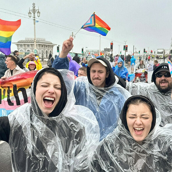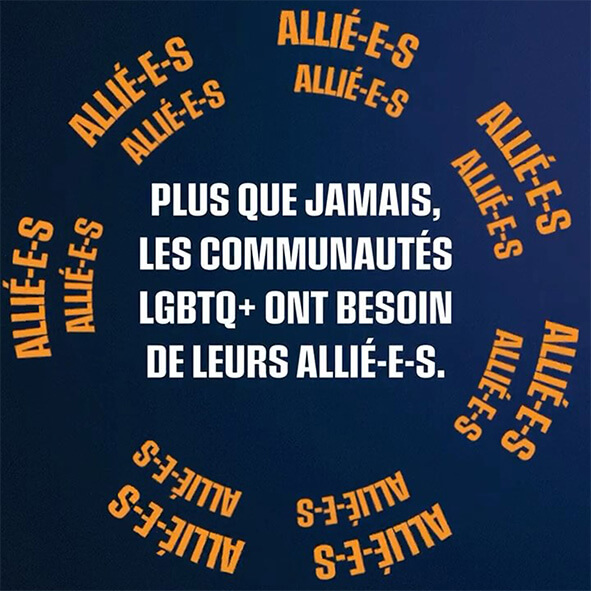 De la même manière, il n’y a pas de véritable soutien sans allié.e.s. C’est pourquoi nous avons créé l’Effet allié – un symbole qui combine la force des deux et permet aux allié.e.s de se tenir fièrement aux côtés des communautés LGBTQ+.